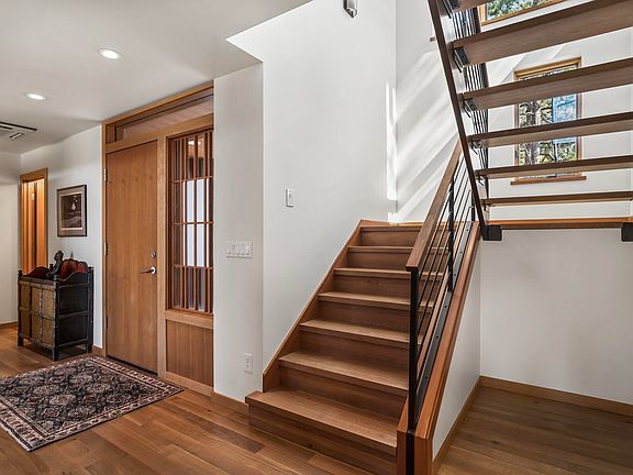 Located in the desirable Shevlin Commons westside neighborhood, this modern, green home melds with the natural character of the site and surrounding park lands. Designed by local architect, Erik Oldham and built by Woodcraft Environmental Builders, the well thought out floorplan focuses on function and livability. A jewel box of artistic details soften the modern lines. Beautiful interior finishes include 11.5 ft ceiling of exposed double beams, Douglas fir cabinetry, rift cut white oak floors, pellet fireplace, quartz and granite counter tops, well appointed kitchen with walk-in pantry, Shoji style sliding doors, cable lighting and clerestory windows offering an abundant light filled living space.
