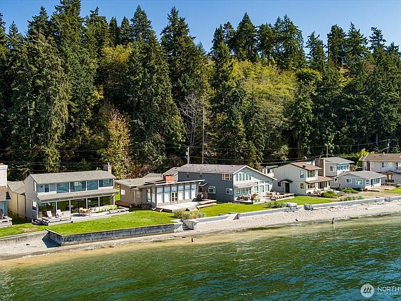 Welcome to Barr Beach on beautiful Mutiny Bay. This rare waterfront home offers world-class sunsets, the best soft sandy beach, stunning view of the Mountains, Sound, marine and wildlife, and passing cruise ships, create a mesmerizing experience. The bright open floor plan is filled with natural light, has been recently updated in all the right areas, like new baths, wet bar, kitchen, and offers a huge garage and shop to add convenience to this extraordinary beachfront escape. 3 bdrm, + bonus rm, 2 bath, private mooring buoy, new bulkhead, fish from your beach, walk for miles in both directions on beautiful sunny days. Enjoy the serenity of this private 12-home enclave. Majestic memories are waiting to be made.