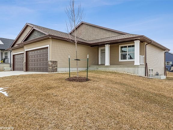 A rare new construction 5-bed, 3 bath ranch with split bedroom layout and a massive 4-stall garage! This popular plan features vaulted ceilings, corner stone fireplace, gourmet kitchen with granite tops, crown molding, pull-out trash drawer, subway tile backsplash, and a huge pantry. The over-sized mudroom includes a built-in locker/bench and laundry room. Enjoy the master suite with walk-in closet, tiled shower, and double vanity. The impressive lower-level is showcased by the huge rec room with daylight windows. Situated on one of the few corner lots in Prairie Ridge 8th, you'll love the added privacy. Equipped with several SMART home devices including front door lock, thermostat, garage door opener, and light switches. Add Solar Panels to this home at any time - All of Twenty40's homes are Solar-Ready. *Open Houses start at our model: 2496 Roycroft Alley Marion, IA 52302*