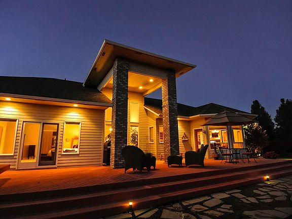 Welcome to "Gentleman's Ranch," an estate located in the Blue Mountain community of La Grande, Oregon. The tree lined private road entrance will only grow grander to this custom 2700+/-sq. ft. rambler that resides on two tax parcels totaling just under 8 acres. The home's expansive use of windows, brick, high ceilings, & custom doors really bring the outdoors in - capturing views of the Blue Mountains and Mount Emily. Inside, tall ceilings with wide walk spaces make this a home for all ages. Love to decorate? The home's formal dining room make holiday gathering's a place your friends and family will love remember. Product features such as travertine, granite, & custom wood cabinetry are throughout the home. The master suite features private full bath, walk in closet, and a soaking tub. Outside, a well kept grass & alfalfa field gives way to a beautiful large lawn, featuring mature landscaped gardens. Lot's of land remains to expand a person's own touches to this "Gentleman's Ranch."