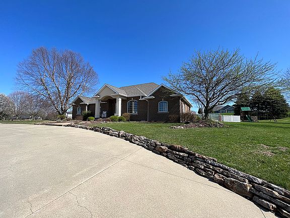 ** Willing to pay buyer’s agent commission!** Gorgeous all brick home coming for sale in Montgomery Indiana. Located in very desirable Terrace Court neighborhood and Barr Reeve School district. House features 5 spacious bedrooms, 3.5 baths, vaulted ceilings, full finished basement, and a back yard oasis with a 20x40 in ground pool. Extensive concrete driveway and beautiful landscaping also contribute to this home’s beautiful curb appeal. House is move in ready and has had many, many upgrades since 2019. 2019: Entire home interior painted including doors, trim, and closets. New Kitchenaid appliances in main kitchen, new microwave and refrigerator in basement kitchen, and every closet system upgraded. New carpet to upstairs living room and stairs. 2021: Pool liner and salt generator replaced. 2023: New 30 year Owens Corning Roof!! House also equipped with an active security system and Geothermal heating/cooling. Natural gas for gas fireplace and garage heater.