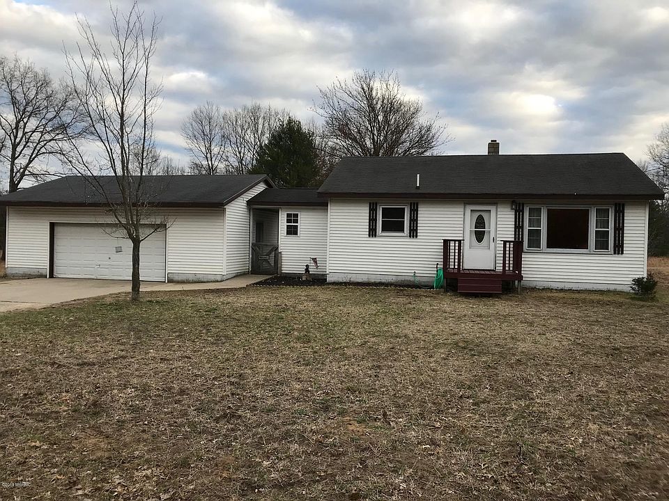 Country setting on 2.30 acres has two generous bedrooms and 30 x 24 garage. The kitchen has new countertops, pantry, and all appliances. The entry/mudroom has ample closets. There is new carpeting in the large living room and bedrooms. The master has a ship lap wall. The near back yard is fenced. There is a chicken coop already there for you.