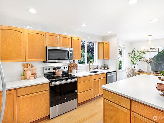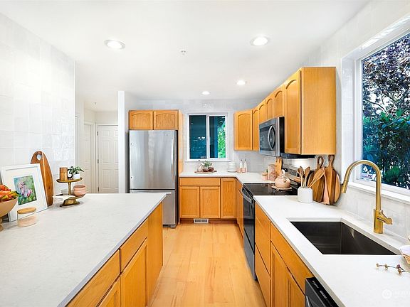 Welcome to this modern oasis nestled conveniently in a quiet community! Step inside to find designer touches & natural light flooding every space. The kitchen is filled with beautiful honed quartz countertops, a brand-new SS appliances, & plenty of storage. The spacious living room & adjoining dining space are perfect for gatherings. The upstairs primary, luxury ensuite, & generous walk-in closet are a home-owners dream! A versatile bonus area can be a home office or intimate living space. An additional bedroom & beautifully designed hall bath round out the 2nd floor. The backyard offers low-maintenance landscaping & room to enjoy peaceful evenings. Quick access to I-5 & plenty of shopping/dining options, & in Mukilteo School District!