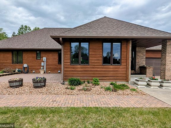 At the edge of town in West Acres cul de sac development is this beautiful 5 bedroom 4 bathroom 3 stall garage home with so many amenities on a 3.58 acre lot. The stunning exterior features cedar siding and brick, includes brand new shingles, multiple patios, gorgeous landscaping, a large deck, hot tub, heated swimming pool with deck surround and privacy fence and a 3.58 acre lot partially wooded on a hill with quite a view! Enter the main level from the covered front porch into the foyer with french doors to a cozy formal sitting room with vaulted ceiling and windows all around. A sliding door leads out to a paver patio. There is also an open concept living room with brick wood burning fireplace, custom built ins, vaulted ceiling and dining space with sliding doors to the deck. The kitchen has stainless steel appliances and a center island. French doors open to a formal dining room with beautiful custom oak built ins and parquet wood floor. There is a half bath off the entryway. The hallway has a laundry closet, full bathroom, 2 bedrooms (one with sliding door out to the pool deck) and then a primary ensuite with sliding door to the pool deck and walk in closet. The private bathroom has a jetted tub and separate shower. There are 2 stair cases to get to the lower level. There you will find the ultimate entertaining space. The recreation room has gas fireplace with custom oak surround, a wet bar, dart board and sliding doors out to the patio and hot tub. The lower level also has 2 bedrooms, a full bathroom, and a bonus room to use as an office, den or hobby room. This home is ready for it's 2nd ever owner with so much to offer! Showing appointments open June 4th. Book your showing TODAY!
