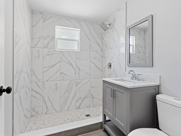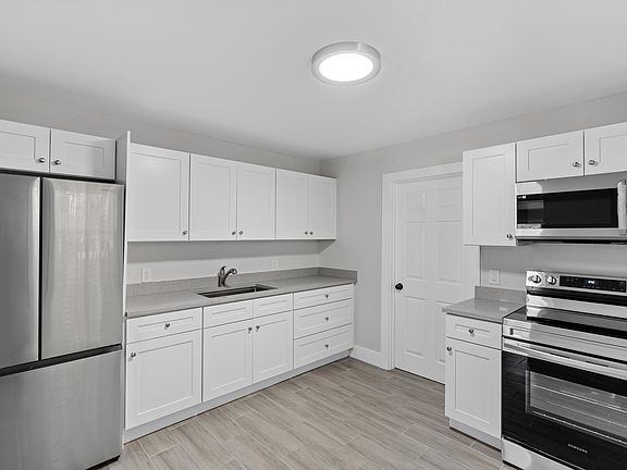 Tastefully redone Northwood area charmer. Built in 1936, this house has a perfect balance between Old Florida charm and a newer home. Situated on an oversized fenced lot w/plenty of room for a pool and kids to play, this home features vinyl flooring through the main living area and beautiful spa like bathrooms on both levels. With a gracious entry way and main level great room, this home features three full bedrooms downstairs, eat in kitchen and utility/laundry room. Upstairs is an owners OASIS, with primary bedroom, large sitting area and huge bonus space that can be a fabulous closet or workout area! White shaker cabinets, quartz counter tops and BRAND NEW appliances in the kitchen Top notch bathrooms outfitted with neutral tile and vanities. Covered carport and garage/shed. Fireplace is decorative only and is not functioning and is not warranted.