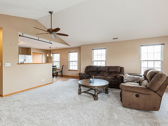 Welcome to 628 Arbor Circle, a well maintained 2-bedroom, 2-bathroom townhome offering peaceful views and modern comfort. This spacious home features vaulted ceilings, a cozy gas fireplace with an oak mantel, and brand-new carpet throughout. A private balcony for morning coffee or warm evenings. The kitchen includes ample cabinetry, a pantry closet and table space. The primary suite includes a luxurious whirlpool tub, a separate shower, and double French doors that open to a versatile office space. Additional highlights include in-unit laundry, a 2-car attached garage, and a pet-friendly community surrounded by parks and walking paths. With exterior maintenance, landscaping, and snow removal included in the HOA, this move-in-ready home offers easy, low-maintenance living in a serene setting.