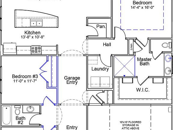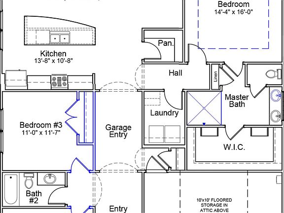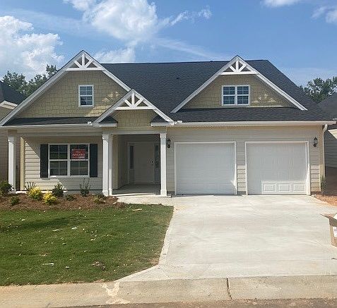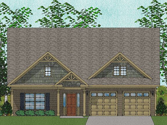 The Edgewood is a one-story, Craftsman-style home that features three bedrooms and two baths. The kitchen includes a large island with bar top, which is open to the dining area and family room, and a large pantry. The primary suite features a large walk-in closet. This split plan features the secondary bedroom and flex space opposite the primary bedroom.