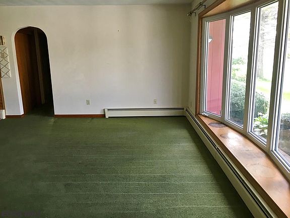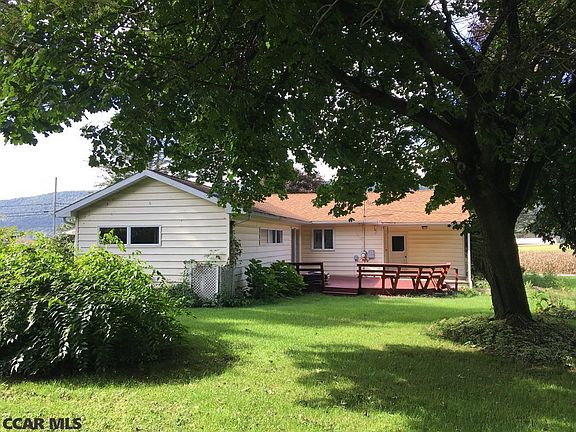 Cozy three bedroom ranch is perfect for a starter home or someone looking for one floor living. Enjoy the fireplace in the large family room and the beautiful view of Purdue Mountain from the living room. Living room, dining area have carpet with hardwood flooring underneath. Many possibilities with partially finished basement with large fireplace and a small workshop. Nicely landscaped yard with large deck for entertaining.