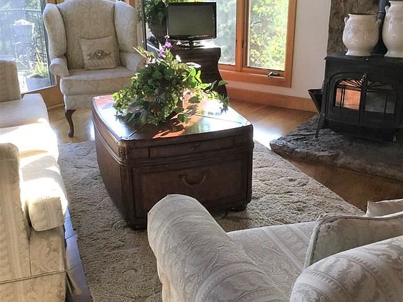 Are you dreaming of Real mountain living and seclusion Drive 4 miles up this maintained mountain road to a secluded mountain cottage, which borders Thousands of acres of BLM. This is where bears and bobcats make their homes. This beautifully 2,000 sq foot, meticulously maintained home has 2 buried, owned propane tanks, that when filled, will carry you through any winter. Radiant in floor heat & Rock Fireplace in the basement family room, & a wood burning wood stove upstairs, keeps you toasty and warm through the snowy mountain winter. Large windows all around, along with the 3 decks with entrances from the main floor, give you a panoramic view of the wild life and the beautiful changing seasons. The large grassy meadow attracts birds & grazing wild life, while the acres of woods provide plenty of firewood for your wood stove heat. The property around the house has been tastefully landscaped with wild flowers, a small pond, and rock formations. The natural stone steps lead up to the outdoor hot tub that resembles a natural pond. The attention to details and unique features in the home are amazing. The master bedroom has a slider out to the balcony with amazing top of the mountain views and the 5 piece master bath boasts a Jacuzzi tub.The oversized one car garage has storage or room for a shop, and the options for the large utility room are endless.