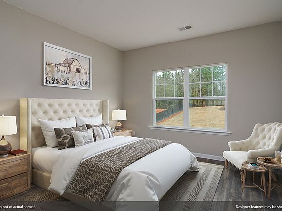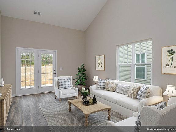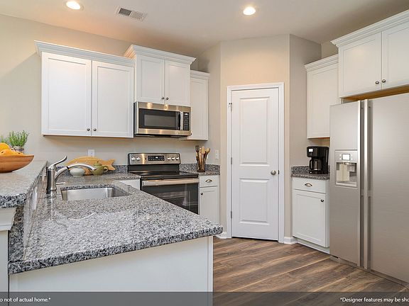 This in-demand Townsend with stone around the garage has four bedrooms and two-and-one-half baths with large extended master on main. This home features a family room with high vaulted ceilings and its cozy gas fireplace that invites you to stay and visit with an Italian slate surround and white belle meade mantle. Open kitchen features lengthy Quartz bar top, recessed lighting plus stainless steel appliance package, gas stove, grey cabinets, cabinet hardware, granite, and tile backsplash. The master bath features comfort height double vanity with granite, private bath with tile shower with fiberglass pan and drop-in garden tub with tile surround. Beautiful hardwood stairs, luxurious vinyl plank flooring and a 10 x 12 patio. Full yard irrigation system is included.
