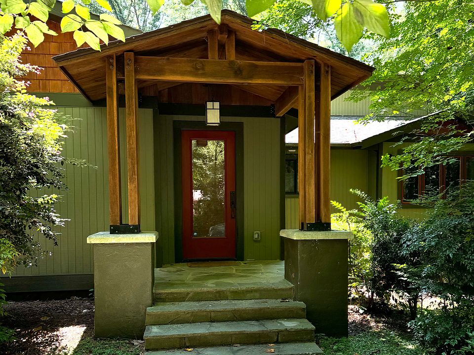 This cozy house is set in a serene wooded neighborhood, only minutes to Carrboro, Chapel Hill, and everything the Triangle has to offer. Features great room with chef's kitchen with stainless steel appliances, vaulted ceiling, sky lights, open floor plan and gorgeous wood beams. Private large fenced backyard with deck on expansive 1+ acre lot -- perfect for family and pets. Hardwood flooring throughout. Pets and chickens welcome. Washer/dryer in home. Plenty of parking with circular front driveway. Pets allowed with permission. Tenant responsible for utilities and lawn maintenance. No smoking allowed. Lease duration 6 months or longer. Available October 1st.