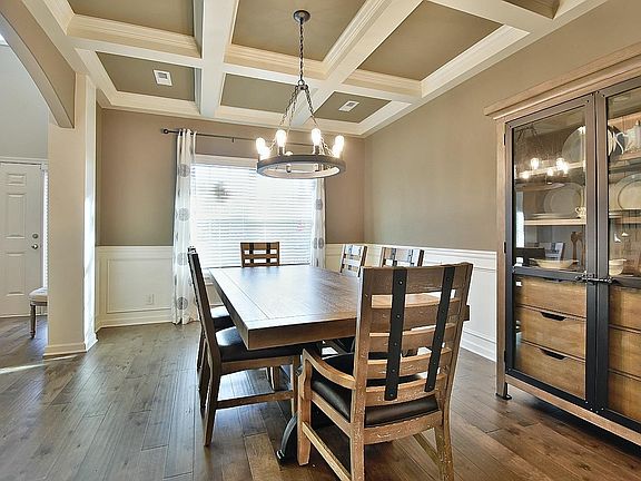 The Camden Plan....4 bedrooms an 2.5 baths/ open kitchen with island and granite tops/ family room with fireplace/ formal dining room with coffer ceiling/ open foyer/ large master bedroom with sitting area/ 3 guest bedrooms with catheral ceilings/ 5 piece master bath with tile shower and soaking tub/ large walk in master closet/ covered ''Game Day'' patio with corner fireplace pre-wired for TV/ sec system/upgraded light fixtures/mud area drop zone/lots of upgrades