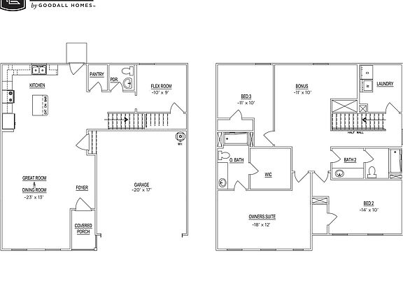 The Jackson Plan. Only 4 bedroom floorplan in Rivers Landing!!! This two level open concept floorplan offers a large owners suite along with a large bonus room and two secondary bedrooms upstairs. One bedroom down can also be used as an office or flex space. Quartz countertops and stainless appliances. Dishwasher, Microwave, and Range/Oven included!