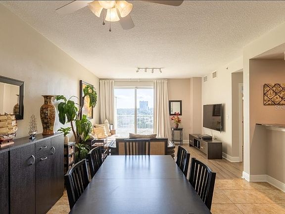 Welcome to Station Square Residences, where downtown Clearwater living meets comfort and convenience. This spacious 1-bedroom + den, 2-bathroom condo spans 1,187 sq ft and is perfectly positioned in the heart of the Cleveland Street District. Step inside and enjoy an open-concept layout with abundant natural light, ceramic tile and wood-style flooring, and a generous balcony/patio that extends your living space outdoors — ideal for relaxing or entertaining with city and partial water views. The kitchen features granite countertops and well-maintained appliances, flowing seamlessly into the dining and living areas. The versatile den is perfect as a home office or guest space. With in-unit laundry, two full bathrooms, and ample storage, this home blends style with everyday function. Station Square offers resort-style amenities including a rooftop pool and sun deck, fitness center, clubhouse, and secure, under-building parking. Built in 2008, the building features 15 stories, elevators, and controlled access. Live steps from local restaurants, shopping, cafes, and the Capitol Theatre. Enjoy easy access to Coachman Park, with outdoor concerts and public events, and you're just minutes to Clearwater Beach via the Memorial Causeway. Experience the best of Florida's Gulf Coast lifestyle in this well-located, move-in-ready condo.