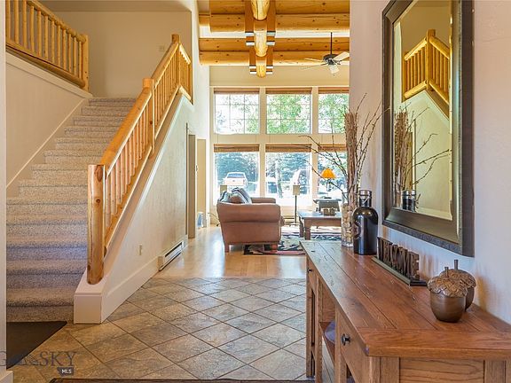 Crail Creek Club Condo is located just off the Big Sky golf course, a short walk to the golf shop and adjacent to cross country ski trails. This end unit condominium offers a fabulous layout with an open floor plan. Beautiful large log beams accent the vaulted ceiling in the living area with a wood burning fireplace; kitchen, dining area, master suite, walk in closet, large master bathroom, laundry room all located on the main level. A second bedroom suite and sitting area located on the upper level with a bonus room in the lower level. Ideal location to enjoy Big Sky Meadow and Town Center restaurants, amenities, Farmer's Market, Summer concerts or a day of fishing or trip to Yellowstone National Park. Attached two car garage - Sold furnished and ready for you to move right in!