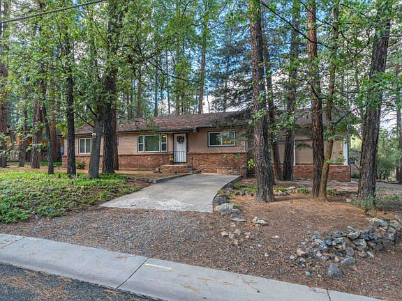Great opportunity for a comfortable home nestled in over a half acre of ponderosa pine trees! This 1783 sq ft 3bd/2ba home has been recently refreshed and remodeled with updated bathrooms, kitchen cabinet refinishing and new granite countertops, contemporary wood look tile through the high traffic areas including the kitchen, complimenting the existing hardwood floors found throughout the house. The large family room features vaulted ceilings with wood beams, a stone fireplace with wood burning fireplace insert, and large picture windows looking out on the fenced back yard with paver patio & natural landscaped courtyard. Other features of this home include a front living room, formal dining room, laundry room, 2 car carport that could be convert to an enclosed garage & an outdoor shed!