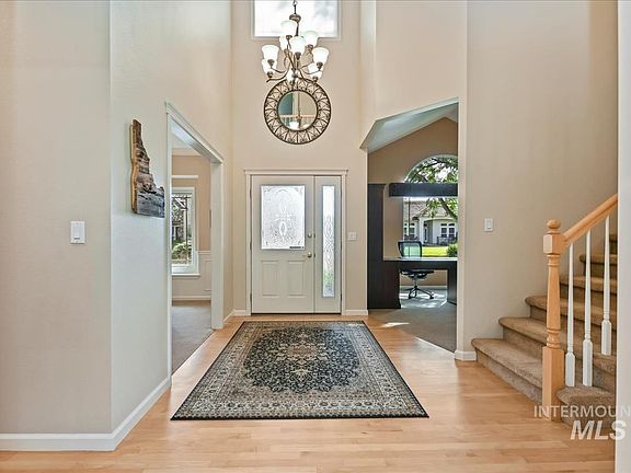 Gorgeous home in desirable Meridian Greens! This spacious, immaculate 4 bed, 3.5 bath beauty offers 3,712 sq. ft. of living space on a .43-acre lot with a peaceful creek view. Inside features include two bonus rooms, a large primary suite with dual walk-in closets, and a fully remodeled spa-like bath with a granite dual vanity, heated tile floors, heated towel bar, and luxurious double shower. Granite counters and solid cherry cabinets add a touch of luxury to the remodeled kitchen and laundry. Enjoy a rare 5-car garage that easily fits a dually truck. Garage also includes extensive built-in cabinets and workbench. Enjoy entertaining on the massive, covered patio that opens to the park like mature landscaped backyard featuring a retaining wall and a staircase that leads to the fenced lower level overlooking 10 Mile Creek. Ample room available for a pool and a pickle ball court. Centrally located with quick access to freeway and shopping. Too many extras to list, make this rare gem yours!