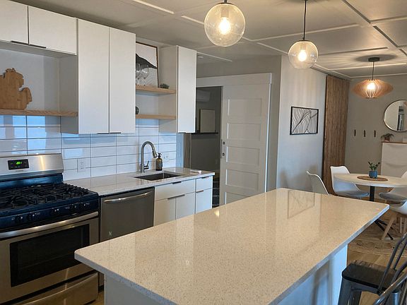 Jordan Lake front cottage. Beautifully remodeled 2 bedroom on 430 acre all sports lake. Home was completely renovated top to bottom and features an open floor plan with incredible views of the lake. Perfect for a summer vacation home or a year around residence. Nice deck with wrap around seating, hot tub and mature shade trees. Lakeside patio with fire pit. Eagle Point has the best sunsets and swimming area. Also included are a 1.5 car garage PLUS a back lot for extra parking or an outbuilding for your toys! All appliances and the dock are included. Immediate occupancy.