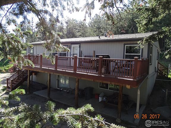 Priced below recent appraisal!Enjoy a peaceful and beautiful community only 30 minutes from Boulder or Longmont.The property offers privacy, close access to National forest trails and ample parking. This home has been well taken care of with a recent history of a new deck, roof,furnace and water heater.Large master bath and vaulted ceilings on main floor.Lower level walk-out is partially finished could be easily completed to increase value and function!Tree top and mountain views from deck.