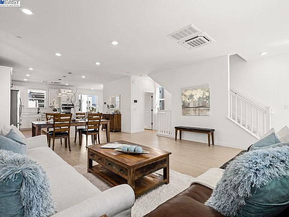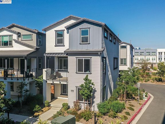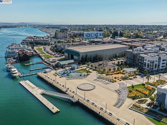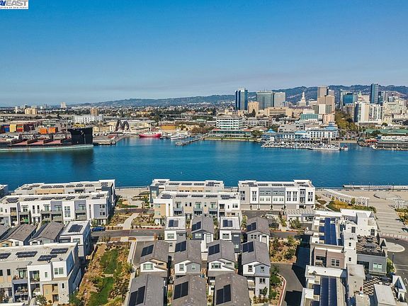 Open Sat Feb 24th and Sun Feb 25th from 1-4. This stunning, fully detached single family style residence was built in just 2021 & shows like a model home! The corner location offers bay views of the Oakland Estuary, set along the backdrop of the Jack London Square skyline! The PERFECT floorplan considers every lifestyle. The ground level offers a bedroom with a full bath & walk-in closet, perfect for in-laws, au pair, or office. The 2nd level is designed for entertainment, featuring a chef's kitchen with spacious island, modern pendant lighting, chic white cabinetry, quartz counters, a walk-in pantry, & premium appliances. Various dining options are available, including the formal dining area, breakfast nook, breakfast bar, or al fresco on the deck or lower level patio. The 3rd floor hosts the primary suite which offers a soaking tub and dual vanity. On this level there are 2 additional bedrooms, another full bathroom, & an upstairs laundry area with new washer & dryer. The Bay 37 Community is one of the best locations in Alameda! Walk to Alameda Landing shops, services, & eateries including Target & Safeway. The location is a dream for commuter's with quick access to the posey tube, freeways, the Alameda Ferry, & the free weekday shuttle to BART!