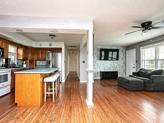 Come on over to the conveniently located Rolling Hills neighborhood to find this lovely brick ranch ready to be called home. In the heart of the home is a desirable open living room/kitchen concept offering lots of space to relax and hangout with the family. The kitchen is centered by a large island offering additional cabinet and counter space and is brightened by an array of recessed lights while the backsplash pairs brilliantly with the smooth laminate countertops and adds a classy touch. Included in the kitchen are all the appliances (refrigerator, dishwasher, stove, and microwave) and rounding out the kitchen is an adorable dining area. Down the hall is a sizable utility room furnished with a handy 1/2 bath. Then situated on its own wing of the home are 3 generously sized bedrooms all sporting that same beautiful hardwood as the living room/kitchen. Accompanying these bedrooms is a full bathroom featuring a stylish vinyl tile floor, dual vanity, and nifty storage closet. Outside you'll love being able to entertain or unwind on the rear deck. This deck is covered by a cool canopy and furnished with a privacy fence so you can relax in peace. There is also a wrap-around bar to really ramp up the fun and as an added bonus... the inflatable hot tub stays too! Next to the deck is a spacious patio for even more furniture and fun... and don't forget about the enormous fenced-in backyard that is perfect for the kids and pets to play. Anchored in the backyard is a 10 X 9 storage shed with a lean-to giving you a spot for the mower and all the yard tools. There is also an attached carport to keep your vehicles out of the elements and updates that include a new roof (2023) and heating system (2023)! Call IRVIN ABELL for the personalized tour today!