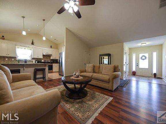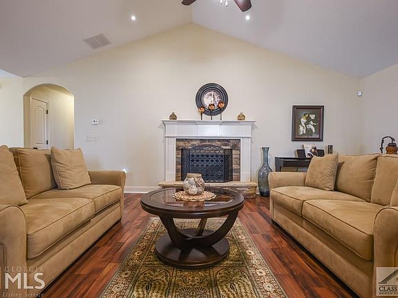 No expense was spared by retiree for upgrades on this customized four-bedroom, stone ranch in popular West Athens community. Creekside Manor is in a prime location, minutes to Hwy 316, and easy access to both Athens and Atlanta. This family friendly neighborhood with playground is also popular with retirees; in particular, this one level floor plan. There is an easy transition from garage through to kitchen. The main living area is open and inviting with tall ceilings and lots of natural light. The entrance has a covered front porch with attractive glass storm door. There is a state-of-the-art security system, with cameras that will remain with the house. The marble floored foyer features a lovely design by master tile cutter.