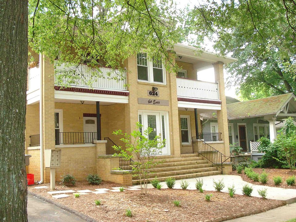 Please contact through Zillow's messaging system. I do not answer calls from numbers I do not recognize. Near the Central Avenue Arts District, no dogs please, perhaps a cat. Everything on the interiors has been redone (walls, plumbing, electrical, HVAC) except the original, beautiful refinished hardwood floors. ~1000sf 2BR, 1BA Flat. Around a mile from downtown Charlotte, downtown shuttle 1 block away, park for free and ride the shuttle! Only blocks away from Uptown Charlotte and convenient to NoDa and Plaza Midwood areas Short stroll to eclectic Central Avenue arts district, restaurants and taverns Lower level flats features a porch with terra cotta tile flooring facing Uptown Upper level flats feature a balcony with non-slip finish facing Uptown Quiet street with trees and sidewalks New HVAC (central air & central electric heat) New roof and new designer windows Full-brick exterior Sunny bistro gourmet kitchen with ceramic tile flooring New designer kitchen sink with upgraded faucet New stainless dishwasher New stainless smooth top range Built-in stainless microwave with integrated stove light and vent Breakfast nook with designer lighting American Woodmark Del Ray maple kitchen cabinetry with upgraded mocha glaze Granite/granite composite kitchen counter tops Designer paneled interior doors with decorative arch Walk-in pantry and plenty of storage Closets galore! New tile surround in bath with crescent shower curtain rod New bath sink with solid surface counter and maple cabinet 2nd bedroom features a corner closet New designer light fixtures throughout Security lighting Metal security doors at all entrances One Year