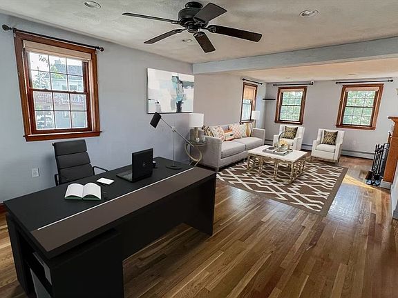 Best & Final offer due by 3pm Monday. Welcome to an exceptional 3-4 bedroom, 2.5 bathroom smart home in West Revere, blending tranquility with ultimate convenience. The location is highly desirable as it is in close proximity to groceries, shops, restaurants, commuter bus and offers easy access to the highway. Inside, discover an open-concept office and living space with a cozy fireplace. The updated kitchen features stone countertops and a breakfast bar. Upstairs, find a spacious primary suite with a walk-in closet, plus two more bedrooms and a renovated full bath with a walk-in shower and soaking tub. The versatile, finished walk-out basement offers an entertainment hub, dedicated office, or home gym. Future-ready with EV charging and solar panels, this home boasts recent updates including a young roof, siding, and heating system. This move-in ready gem provides a private oasis with easy access to everything you need. *Note: Some photos in the listing sheet are virtual staging photos