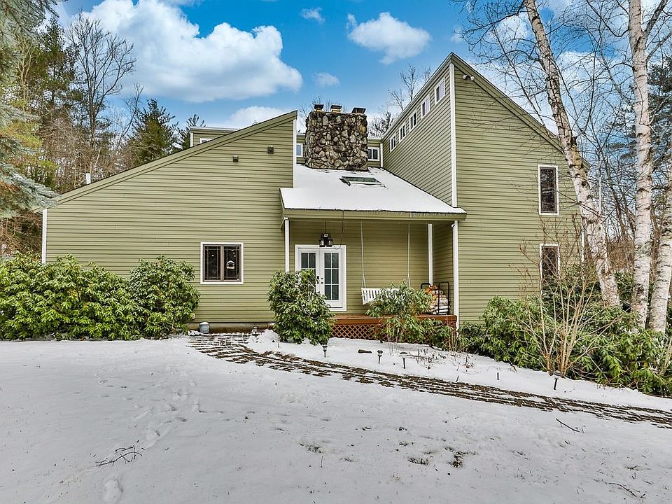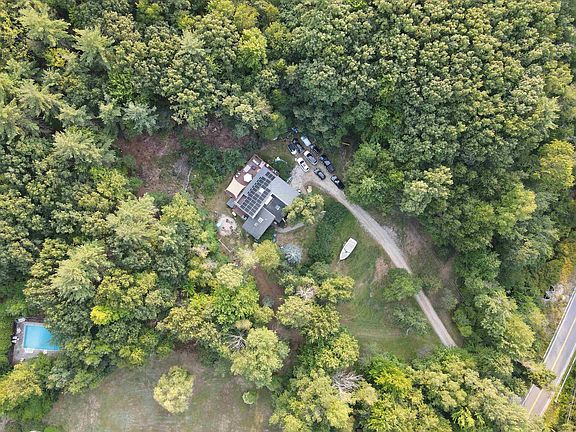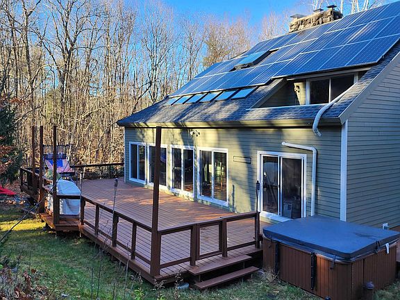 Contemporary on a private 9.06-acre lot. Covered porch on the front and large deck on the back. Owned solar panels that produce 9Mwh yearly, no electric bills during summer months. Not leased. Oil Boiler/mini split and Pellet boiler heating system. 2-story soaring ceiling in the living room with a center fireplace. Newer kitchen with granite counters and large farmer sink. Heated basement with workshop. 1st-floor office. Bedrooms with vaulted ceilings. Lots of closet space.