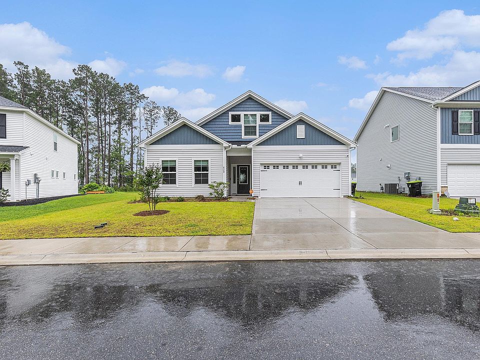 Welcome to this stunning 4-bedroom, 3-bathroom home located in the highly sought-after Sessions Point neighborhood. This Durham floorplan showcases numerous upgrades, including stylish LVP flooring throughout the main living spaces. The open concept design is enhanced by vaulted ceilings and a cozy natural gas fireplace, creating an inviting atmosphere. The spacious kitchen is perfect for entertaining, featuring a work island, stainless steel appliances, elegant grey cabinetry, and a combination of granite and quartz countertops. The main level offers generous living and dining areas filled with natural light. Upstairs, guests will appreciate the large bonus suite complete with a full bathroom, closet, and additional storage space. Step outside to a tranquil rear screened porch overlooking the water and mature trees, perfect for relaxing or hosting gatherings. The backyard offers ample space for outdoor fun and activities. The attached two-car garage provides convenience and additional storage. The home's thoughtful design makes it ideal for both everyday living and entertaining. Residents of Sessions Point enjoy access to a well-maintained community pool. Located just minutes from local dining, shopping, and beaches, this home offers the best of coastal living. Every detail has been carefully curated for comfort and style. Whether you're looking for a primary residence or a second home, this property is move-in ready. Schedule your showing today!