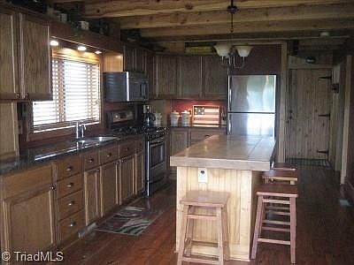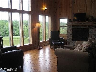 Whippoorwill Cabin a rustic feel with all the modern conveniences including a great chefs kitchen with an island for cooking and entertaining stainless appliances granite counter tops ,wide Antique plank flooring, a wrap around Porch, Satellite TV AND WI-FI 2 BR,2ba on 40 acres with a 3 acre stocked pond complete with a dock and canoe The natural beauty of the Carolina Foothills is ever present, with it rolling hills , views of Pilot mountain and the Blue Ridge. The cabin is perched on top of a hill.