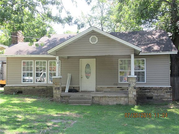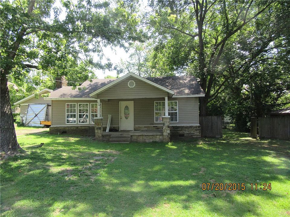This 2 bedroom, 1 bath home with vinyl siding, and windows, covered front porch, detached garage, large shaded lot needs some repairs & someone to make this a home