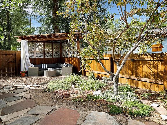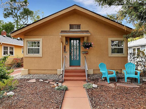 Walkable to neighborhood playgrounds, access to Mid Shooks Run bike trail, Downtown, Memorial Hospital, Colorado College, Olympic Training center, Stellina Pizza and Switchback Coffee and within downtown Scooter Zone - This downtown bungalow gem has it ALL. The home is light & bright w/stunning windows throughout the home. The original hardwood floors throughout the main level & the built-in bookcases and shelves are as charming as beautiful. The living room has a wood burning fireplace ideal for the cozy, chilly Colorado evenings. The home is ideal for entertaining w/ the open floor plan flowing through the screened in porch, living & dining room and the newer kitchen w/ a 2 tier deck off the kitchen. The updated kitchen has slab granite counters, newer appliances to include GE EnergyStar refrigerator, stainless sink & instant hot water. Kitchen opens to 2-tiered deck w/ awning on top level to the landscaped backyard. The larger 2 bedrooms and updated bath complete the main level. The lower level has a non conforming bedroom, now, but is wired for a theater experience. The extra large laundry room is a multiple use area, plenty of storage and a 1/2 bath. The beautifully landscaped outdoor spaces will not disappoint! The backyard has been xeriscaped w/water wise, native plantings w/3-season interest & an apple tree that grows 4 types of apples! Work from home? This home includes a spacious, 7x17 finished shed or studio w/insulation & drywall, 5 windows looking across small open space. A waterproof, outdoor buried Cat7 ethernet cable for connection to your modem in the house & your additional wireless router in the shed. Room for your desk, a small loveseat, etc. The extra large 2 car garage has plenty of room for your, toys, storage and cars. The garage is 240v. ready for 2 EV car charging. This home has the location, the charm, the stunning outdoor spaces, huge garage, multiple work from home options, what are you waiting for? Come make this home yours!