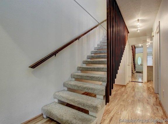Great townhouse style condo in the heart of Wasilla. Perfect commute location and located close to Wasilla Lake, shopping, schools, medical & the new library! This 2 Bedroom 2 1/2 bath has arctic entry, large eat-in kitchen with lots of cabinets and counters, spacious living room with wood burning fireplace & a balcony/deck. There is a tennis court on site and wooded common areas perfect for dogs.