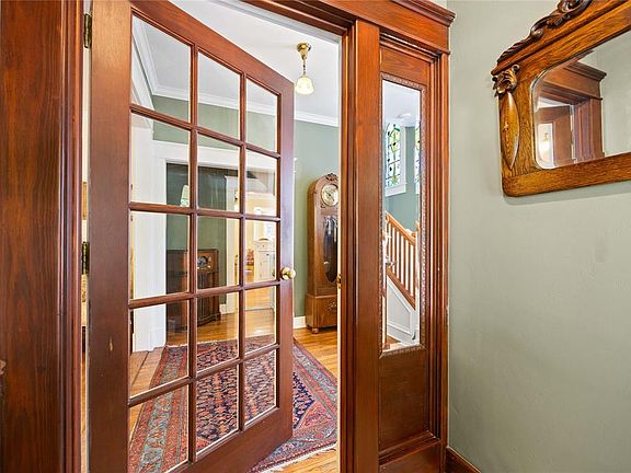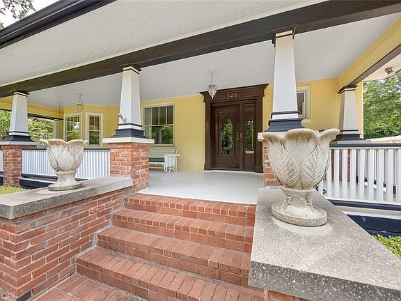 Situated on an oversized lot, this classic Mesta Park gem features a welcoming covered front porch perfect for entertaining neighbors, family, and friends. As you enter the home, you are greeted by an elegant foyer entryway that leads to a formal living area complete with a fireplace and detailed mantle. With 9-foot ceilings throughout most of the house the space feels open and airy. The second living area which can serve as a study or a family room adds to the home's versatility. The formal living room seamlessly opens to the formal dining room, featuring a bay window and French doors. The classic kitchen is designed with a breakfast bar, a dining nook, and a convenient half bathroom. On the second floor, you'll find working transom windows over all bedroom doors adding to the home's historic charm. The primary suite offers a fireplace, two closets, one being a walk-in, a shower, and a luxurious jetted tub while the secondary bathroom upstairs features a classic claw foot tub. The third level is an ideal space for a theatre room or recreation room, complete with a bar area. Multiple outdoor seating options in the backyard, including covered patios and decks, provide ample space for relaxation and entertainment. Enjoy summer days by the lovely vinyl-lined pool. The property also includes a charming carriage house with 872 sf (mol) not included in the square footage and features a kitchen, living room, full bathroom, and a large studio upstairs with a half bath - this versatile space offers endless possibilities for guests or a home office. Bonus small storage house following the same architecture of the main house in the backyard behind the pool. Don't miss the chance to own this stunning craftsman home in the heart of Mesta Park.