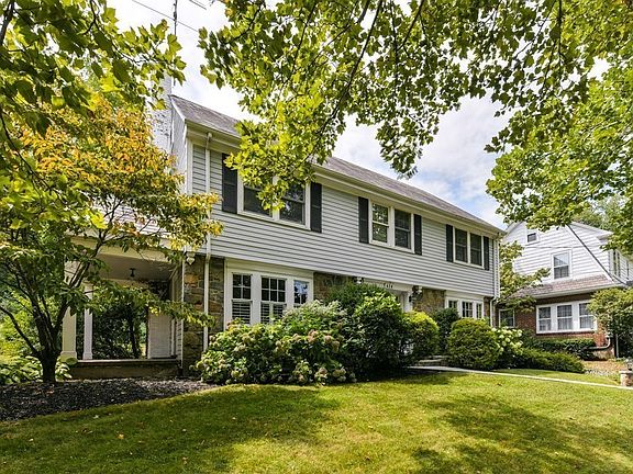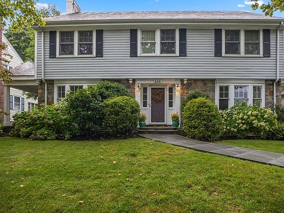 Picturesque, sun-filled, custom residence w/slate roof and composite siding. Main level features wood floors, tall ceilings & large windows and a welcoming foyer. Spacious, front-to-back living room w/fireplace offers access to an all-season sunroom overlooking the back yard. Separate, inviting dining room with a built in china cabinet with views of the golf course. The kitchen, office or den and a full bath complete this floor. The 2nd level offers a large master bedroom w/dressing area, en suite bathroom and sun porch, plus 3 additional bedrooms & a full bathroom. The basement has versatile finished spaces with a family room with a fireplace as well as a game room large enough for a pool table. Expansive, private yard with a 2 car over sized detached garage with storage. There is also an irrigation system in the professionally landscaped front yard. Stellar Chestnut Hill location near Skyline Park, & convenient to Chestnut Hill Street & Mall shops, as well as Longwood Medical area.