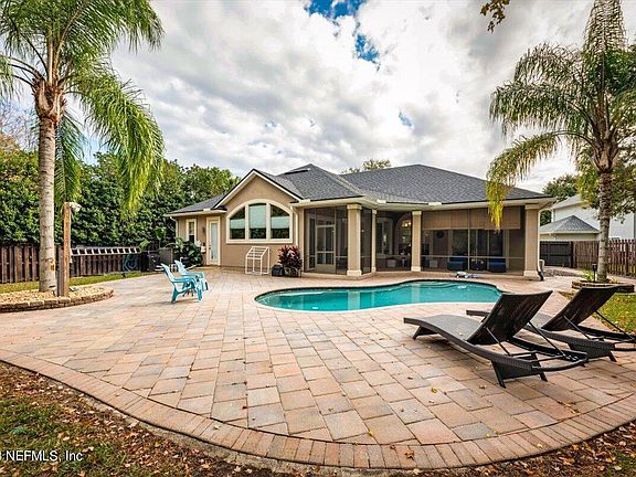 Schedule today to see this immaculately kept South Hampton POOL Home situated on a cul-de-sac with a welcoming courtyard entry. Besides all the majors being updated in 2020, for you, like Roof, Water Heater, Water Softner, and HVAC. This home features a fully fenced backyard oasis with heated pool, paver decking, expansive screened lanai and mature landscaping-ideal for entertaining friends and family! As you step inside you are greeted with expansive views of the pool, lovely hardwood floors, voluminous ceilings and a formal dining room with custom crown detailing. This kitchen is truly the heart of the home with 42'' white cabinetry, all stainless appliances, breakfast nook and large center island overlooking the family room. Retreat to the owner's suite with a luxurious en-suite offering a soaking tub, separate walk-in shower, dual vanities and a large walk-in closet. Your guests will feel right at home with the privacy of their own guest room and separate guest bath/pool bath. Separately, you have two additional bedrooms with a shared Jack and Jill bath! South Hampton is a beautiful golf community located in St. Johns County - home to TOP "A" rated schools and NO CDD fees. Amenities include: golf course with clubhouse, community pool with splash pad, fitness center, playground, soccer field, tennis, basketball, and pickle-ball courts!