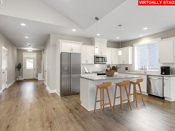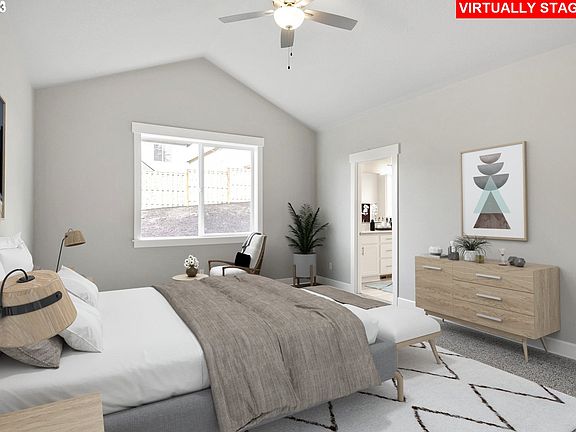 Welcome to the Dugan Estates Benson Plan on Lot 45! Builder's preferred lender offering a 1% reduced rate on all new homes! Experience the elegance of this newly constructed home, spanning 3 spacious bedrooms and 2 bathrooms. Complemented by a huge 2-car garage, this residence also features a dedicated RV BAY!! The primary bedroom and great room both impress with their vaulted ceilings. The primary suite includes a generous walk-in closet and a private bathroom, complete with double sinks and a relaxing soaking tub. The great room, with its cozy electric fireplace, seamlessly blends into the modern kitchen. This culinary space is equipped with an island, electric stainless steel appliances, a tile backsplash, and a functional pantry. The home is framed by professional landscaping and enhanced with fencing for added privacy. This home is under construction, approximate completion 12.19.2024.