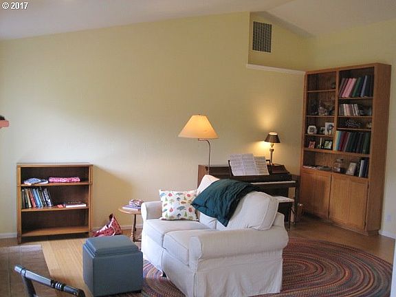 One level home in desirable neighborhood, near Willamette River Bike Path Trail. Beautiful Bamboo floors, lighting upgrades, new tank-less water heater. New gas fireplace insert. Includes refrigerator, washer, dryer. Fenced yard, fruit trees, storage shed.