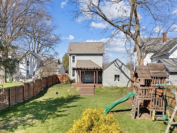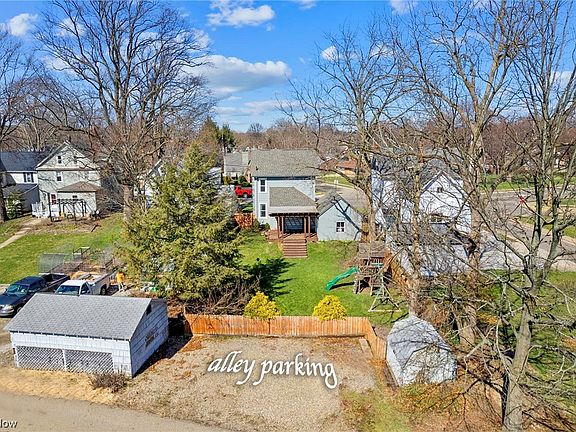 Charming 1885 century home in the excellent-rated North Canton CSD w walkable schools, parks, rec center and YMCA. Your welcoming front porch w room for seating leads inside the designated entryway, which opens to the family room featuring large windows and a nook w closet–office/craft/play area. Laminate wood floors through dining room and kitchen w pass-thru wall, built-in buffet, and SS appliances. Full bath near stairs to 2nd level. Second level offers three bedrooms; one w a door to a large terrace overlooking the front yard. Third level attic (stairs from bedroom closet) for storage. Large, fully fenced backyard w trellis-covered deck and storage shed. Full unfinished basement w waterproofing. Paved drive to attached 1-car garage w insulated garage door and doorway to rear deck. Addt’l parking off alleyway (Aiden Way NW). New furnace 2023, upgraded electric 2020, Radon system 2018, exterior paint 2018, 30-year dimensional shingle roof 2017, vinyl windows 1997. Nearby: 10 min bike
