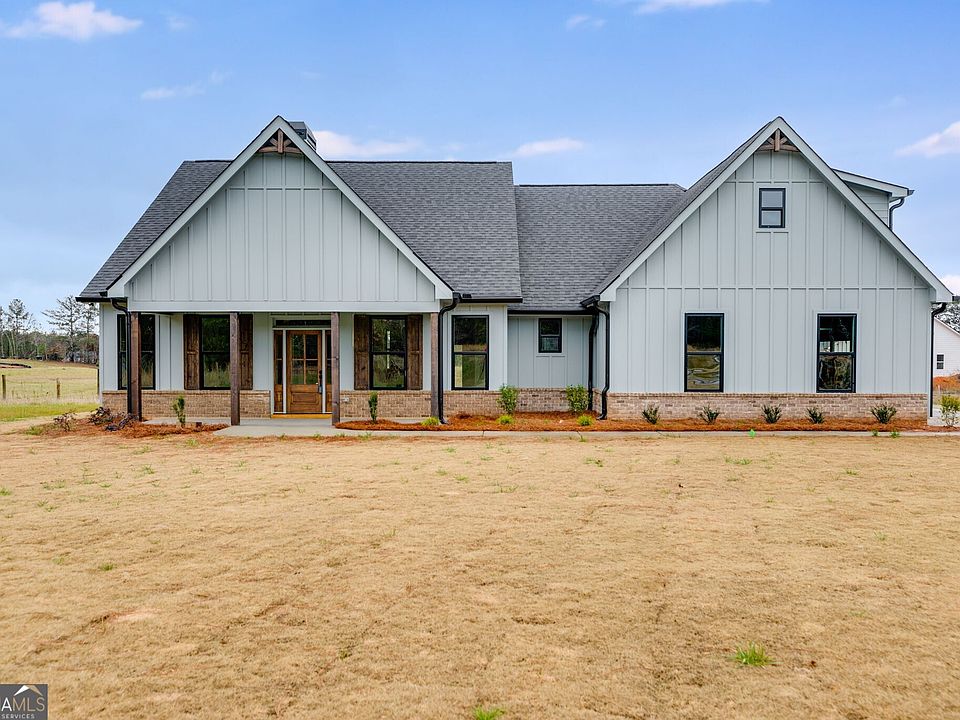 Welcome to this stunning 4-bedroom, 3-bath farmhouse-style home situated on over an acre of beautifully landscaped land. This charming property perfectly blends modern amenities with rustic appeal, offering a spacious and inviting atmosphere. The home features an open-concept design with luxurious LVP flooring throughout, creating a warm and durable foundation. The farmhouse kitchen is a true standout, boasting upgraded granite countertops, a classic farmhouse sink, and a spacious butler's pantry for added convenience. Each of the bathrooms is beautifully tiled, with the master bath offering a frameless glass shower and a free-standing tub, creating a spa-like retreat. The secondary bathroom features a deep-fill tile surround tub, adding a touch of elegance and comfort. Step outside to the large, flat yard, where you'll find the perfect space for outdoor entertaining, complete with a cozy fireplace on the back porch. The expansive yard is also swimming pool ready, offering endless possibilities for outdoor fun and relaxation. Conveniently located, this home provides easy access to schools, shopping, and local attractions while still offering a peaceful, private retreat. With over 1 acre of land, this property has room to grow, whether you dream of expanding your home or creating the ultimate outdoor oasis. This farmhouse-style home combines comfort, style, and functionality schedule a showing today to see all it has to offer!