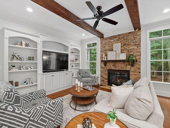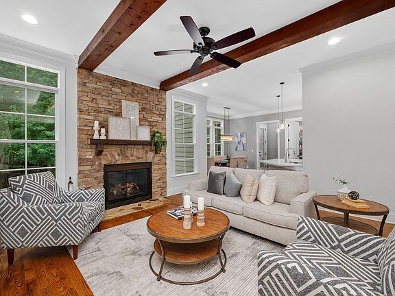 Experience the casual elegance of this luxury estate home in prestigious Wrenhurst at Cary Park! With stone accents and welcoming front porch on the outside, the interior features 10' ceilings, 8' doors, hardwoods thru main level and luxury primary suite on first floor. Stacked stone fireplace and wood ceiling beams appoint the gracious family room. It has a large open kitchen with adjacent breakfast nook overlooking gorgeous wooded, fenced yard. Expansive second level with 4 add'l bedrooms, all w/ ensuite baths, large theatre/bonus room and extra large rec/bonus room! Separate study / storage space near bedrooms. Walk-up unfinished attic for ample storage! Main level features large laundry room off finished mud room with drop zone and mail desk. 3 car garage with12' tall ceilings and extra deep bays. Enjoy the peacefulness of the screen porch which leads outside to extensive stone patio, fire pit and built in gas grill. Large, deep wooded yard with hardwoods, completely fenced. Wrenhurst is a neighborhood within Cary Park and located steps from the American Tobacco Trail, Diavolo Disc Park. Cary Park offers two pools, clubhouse, extensive greenways and trails around the lake. Residents enjoy top Wake County schools, easy access to RTP, RDU airport, shopping, services and highways!