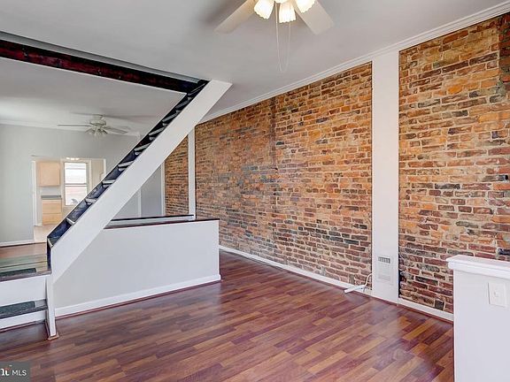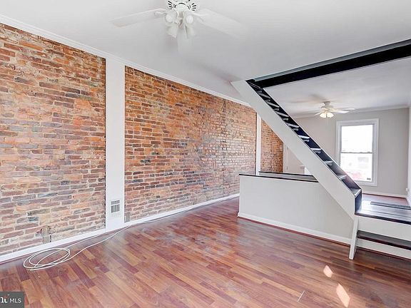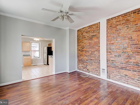Great opportunity to own an end unit townhouse in Brewers Hill. Parking pad in rear. The Interior features a large exposed brick wall, crown molding, and pretty natural light. Kitchen with stainless steel appliances and table space. The spacious layout is 13' wide with two large bedrooms. Freshly painted. Unfinished basement with potential for adding additional living space. Conveniently located to I-95, John's Hopkins, Canton Square, and local shops and restaurants.