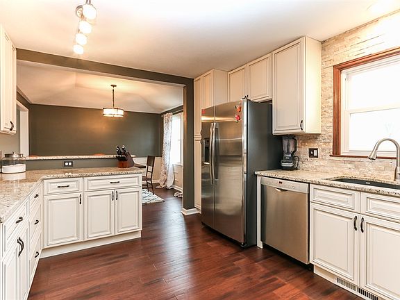 Renovated from top to bottom, brand NEW open kitchen boasts custom cabinets, a tumbled stone backsplash, granite countertops, and stainless appliances. Both baths redone with custom tile, new vanities and fixtures. Beamed family room walks out to covered patio and large flat backyard. New interior paint in today's colors, new flooring on main floor and newer windows throughout. Neighborhood within the boundaries for NEW Olathe West opening Fall 2017.