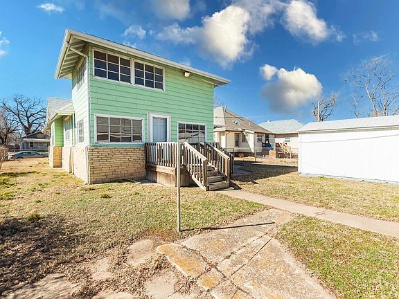 Great owner occupied home or investment property! Adorable bungalow with original hardwood floors. Close to Delano, Friends and Newman Universities. So much potential here! Appliances stay! Home has been a duplex in the past. Unit 1 is  living/1bed/1bath/ kitchen. Unit 2 is living/dining/bedroom with bath/kitchen. The addition on the east side is 2 story allowing the 1st level to be a bedroom or den area with a bedroom and an additional bath on 2nd level.  Cellar is dry and would allow for storage. The 2 car detached garage and shed are in good condition as is the large chain link fenced yard, ready for a pet.