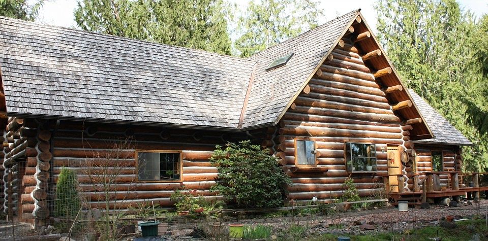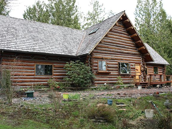 This is a True Log Home. Step inside and find a real stone entry, log railed off dining area, log vaulted ceilings & log steps. Two bedrooms with a loft that works as a sleeping area plus office area. 2 baths one on each floor. Large single attached garage with work bench plus carport. Stone walkways to front door and deck. Out building for firewood another for RV or toys. The property runs 900ft deep towards the Toutle River. If you appreciate a well built log home you will love this home.