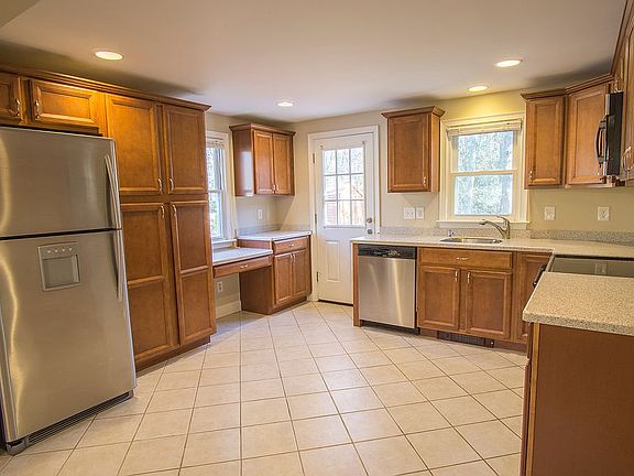 This home has been totally renovated and is located on a deadend with a cul de sac. Since 2008 there is a new kitchen with corian type counters and new cabinets with nice pantry with slide outs, stainless range and dishwasher and tile floor. All windows replaced, new heating system installed 2015. Front to back living room features a wood burning fireplace and plenty of storage. Front to back kitchen dining room or familyroom. The master bedroom is spacious with plenty of storage and warm carpet. There are 2 other bedrooms and 2 full baths with tile floors. Nice flat lot with spacious back yard with shed.