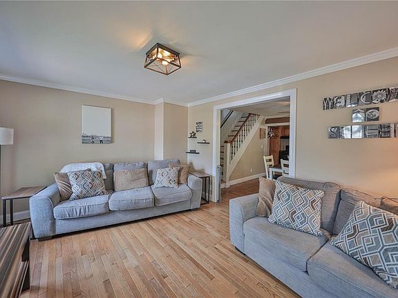 Meticulously maintained brick twin will captivate you upon entry with an inviting living room featuring updated hardwood flooring that extends into the dining room. Updated kitchen with ceramic tile flooring and backsplash. 2nd floor boasting 2 spacious bedrooms with and a bathroom appointed with a soaking tub and twin sinks! Newly added bedroom on the 3rd floor is absolutely charming! The efficiency of a gas furnace was added in 2021 along with a new water heater! Custom Levolor blinds finish out this impressive presentation! The property is an entertaining hotspot with a custom covered deck (24'x 24'), a conveniently located shed and a pathway leading to a 3-car off-street parking pad. Close proximity to restaurants and entertainment. Basement features a bathroom with a shower stall. This property is completely turnkey and move-in ready! A must see!