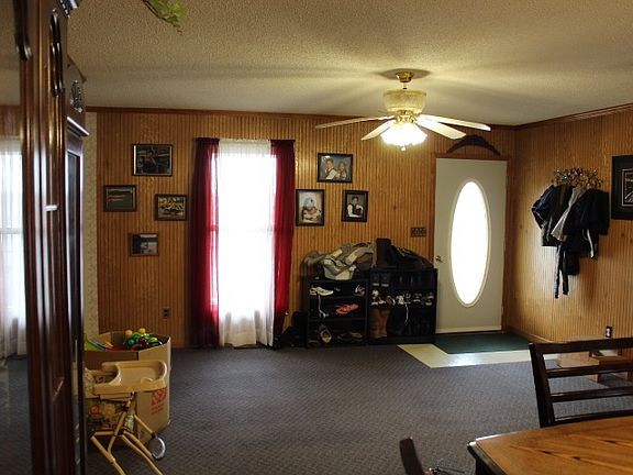 Mayfield Ky This 4 Bedroom, 2 Bath home move in ready. 4th room has wood floors could be a bonus room.This home has both covered front and back porches. A large detached garage with workshop and bathroom and plenty of storage space and is heated with new wood stove. Also a smaller building that used for storage or whatever you need. This 1.75 acre property with circular drive offers a very pretty and peaceful setting. New HVAC unit installed in 2012
