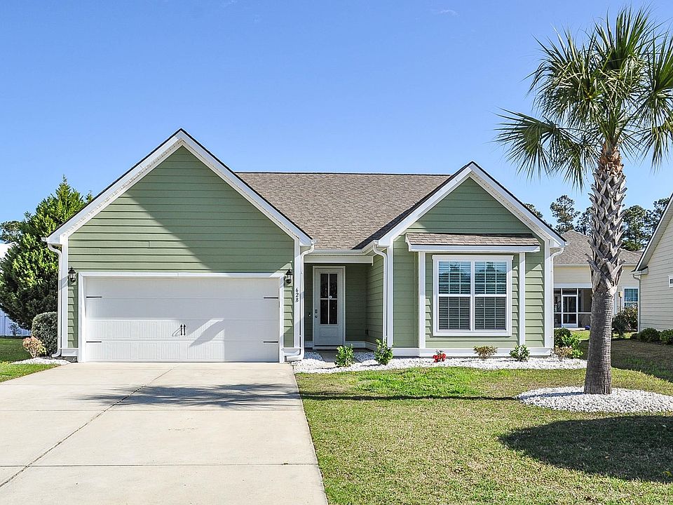 Welcome to Ocean Walk, a Natural Gas Community! This one floor charming cottage home has 3 Bedrooms, 2 Bathrooms, an Open Floor Plan, Vaulted Ceilings, Large Kitchen Island, Rear Screen Porch, 2 Car Garage and is located in the fabulous resort-like neighborhood, Ocean Walk. Some of the features of this neighborhood are: 1) Beach access through Myrtle Beach State Park with annual pass purchase, via golf cart, but with a land buffer between your property and the ocean. 2) Shopping, Restaurants and Health Care facilities right next door in Market Common. 3) Very close to Myrtle Beach Airport and major traffic arteries. 4)Resort Style Pool (Outdoor and Indoor,) Lazy River Pool, Work-out Room, and Adorable Club House Facility as part of your HOA. 5) This well established neighborhood is completely built out, (no jack hammers going full blast) and very few homes being re-sold. Folks are happy here and they know it. As you OPEN THE FRONT DOOR to the wood floors, the "WOW" factor screams in this lovely beach cottage. The vaulted ceiling in the great room, draws you in and natural light floods the room as you STOP to take it all in! The eye easily flows to the massive granite island introducing your beautiful kitchen. This kitchen has spacious cabinetry, back splash and granite counters, and stainless steel GE Adora appliances, featuring a much sought after gas stove. The informal dining area is adjacent to the kitchen, and a screen porch flows right off of the dining area to the rear of the home. The spacious Master Bedroom w/ walk in closet and spa-like bathroom is to the rear of the home for quiet privacy. A split floor plan with 2 bedrooms sharing a hallway bath round out the front of the home. One of the bedrooms is massive and could serve as a multiple bunkhouse for all of your beach guests. A spacious laundry area and very large pantry are tucked away in the back hallway of the home which leads to the garage. The two-car garage complete with newly refinished floor, pull down attic stairs for storage, and gas hot water heater gives safety and comfort to parking the car and unloading the groceries right into the kitchen. The ample yard which is perfect for today's busy lifestyle provides a nice setting while dining on the rear screen porch or providing a space for your pets to play. This house is move in ready, freshly painted in interior and exterior, adorned with lovely light fixtures, all appliances remain, including washer and dryer, and is being sold with a one year Supreme Warranty furnished by the seller. All offers must be submitted with proof of funds or a pre approval on financing. Square footage should be verified by the buyers and is not guaranteed. House is easy to show but must be by appointment only. Call today for a showing!